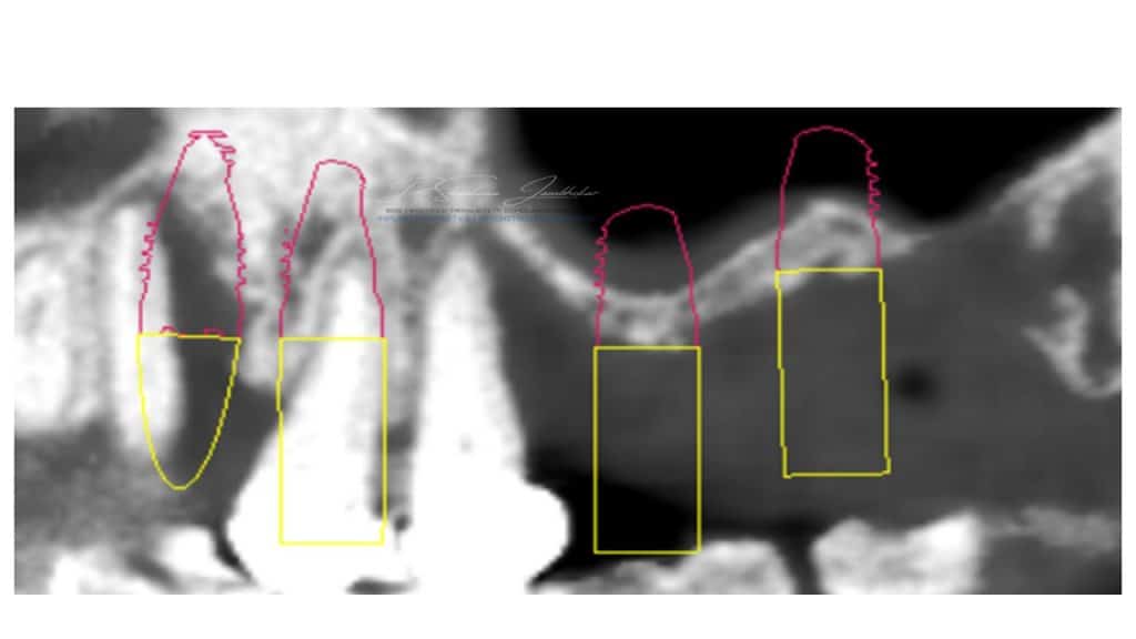 Radiographic examination revealed radiolucent lesion with 23,25 and reduced residual ridge dimensions with sites 26 & 27. Cone beam CT (CBCT) evaluation was performed for available quantity & quality of bone at the proposed implant sites using CS 3D Software.