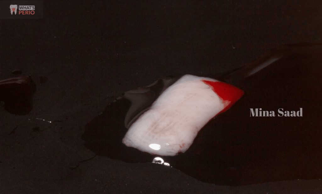 11-A Piece of cotton soaked in a hemostatic solution “Kapron ampoule” (tranexamic acid) was applied over the wound to stop bleeding & an acrylic stent was placed over the wound to avoid its contamination and decrease pain sensation during healing period.