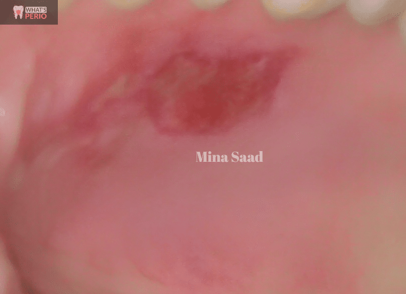 A-With every month it was clear that the grafted tissue become thicker and more pale resembling more the color of palatal mucosa with marked color mismatch with the surrounding keratinized gingiva & unevenness of the mucogingival junction below the grafted tissue which of no clinical significance or disadvantage as the graft is in a non-esthetic zone.