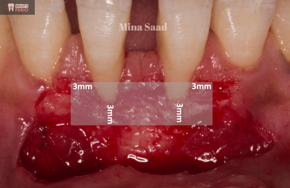 2-The graft must cover at least 3mm of the vascular bed mesial , distal & apical to the exposed root surface…..so the vascular bed size should be bigger than the graft size.